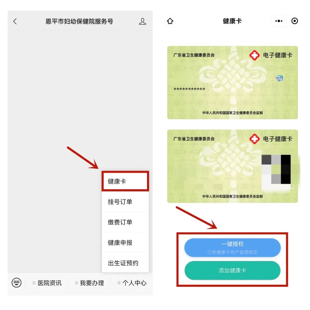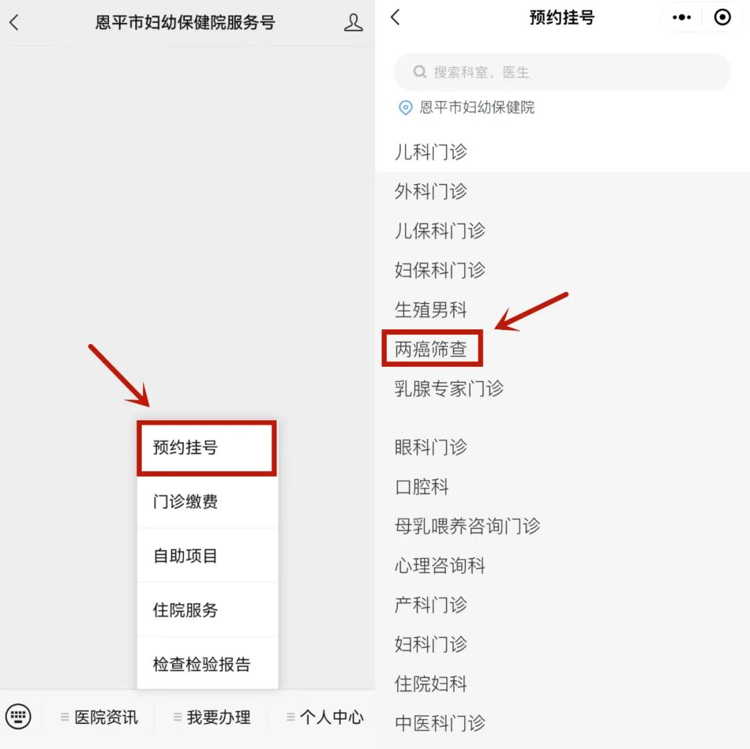 1、关注“恩平市妇幼保健院服务号”。