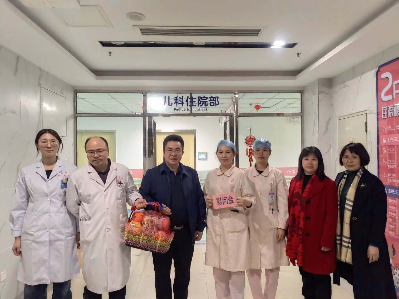 2月9日晚上,恩平市卫健局党组书记蒋蔚昱、局长刘笑云在我院党总支书记、院长吴健嫦,党总支副书记吴坚艺陪同下深入各科室,亲切慰问春节坚守一线岗位的医务人员和后勤员工,感谢他们的辛勤劳动和无私奉献,并为他们送去新春的祝福。