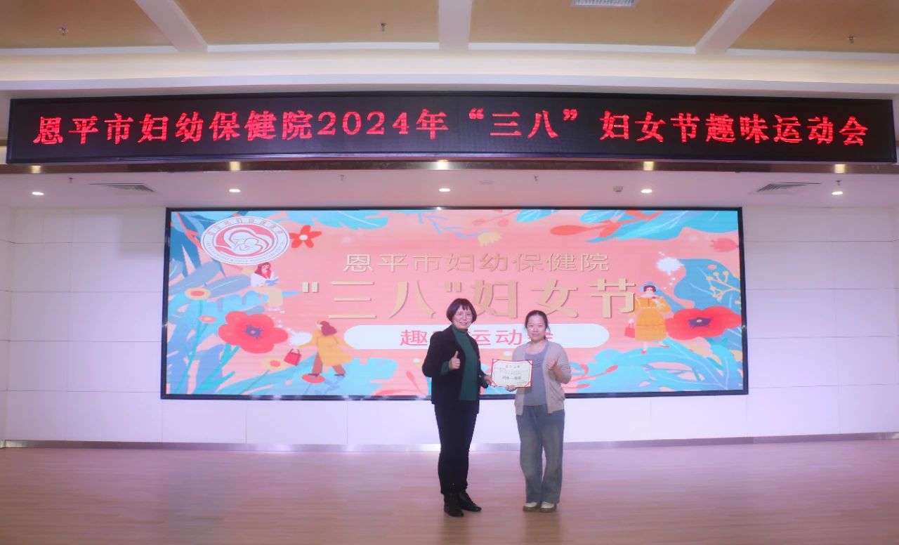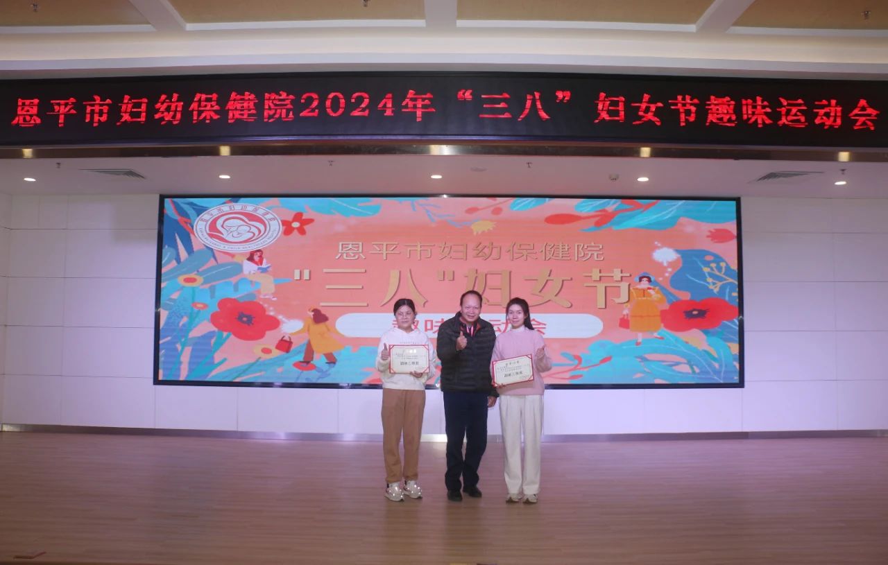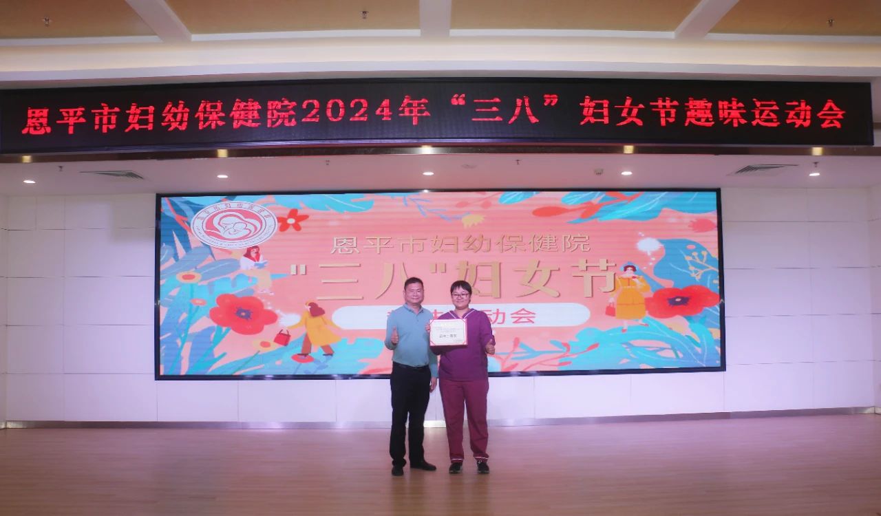 三等奖的儿童保健部(左一)、医技部(右一)颁奖