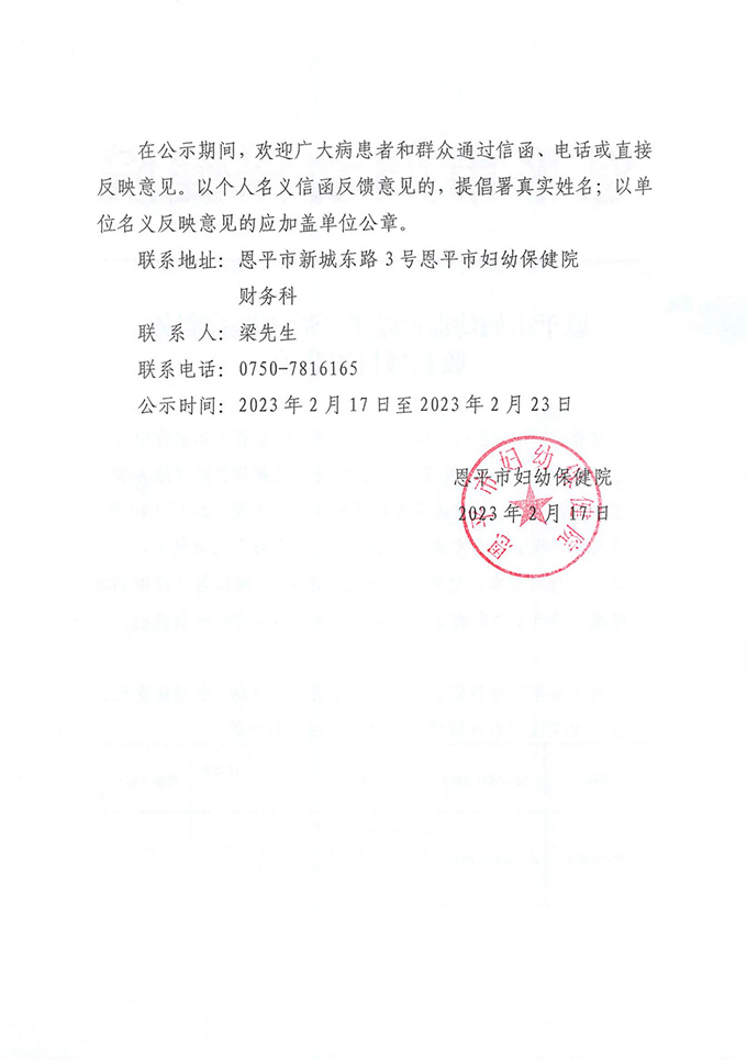 恩平市妇幼保健院插件式监护仪设备院内公开......