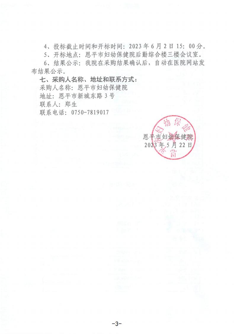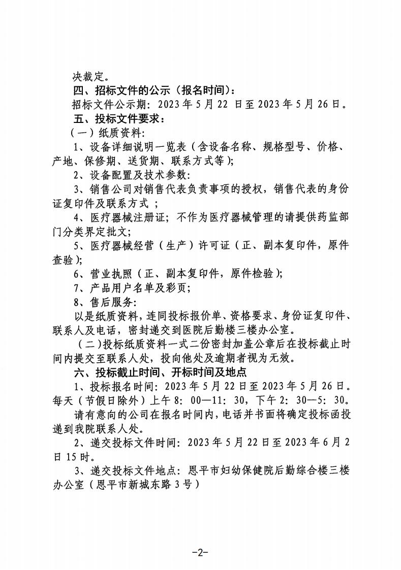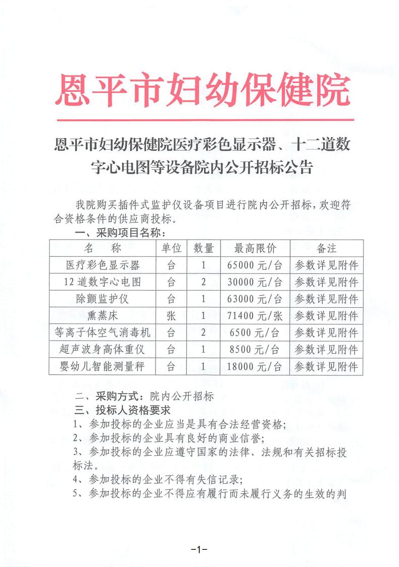 恩平市妇幼保健院医疗彩色显示器、十二道数字心电图等设备院内公开招标公告