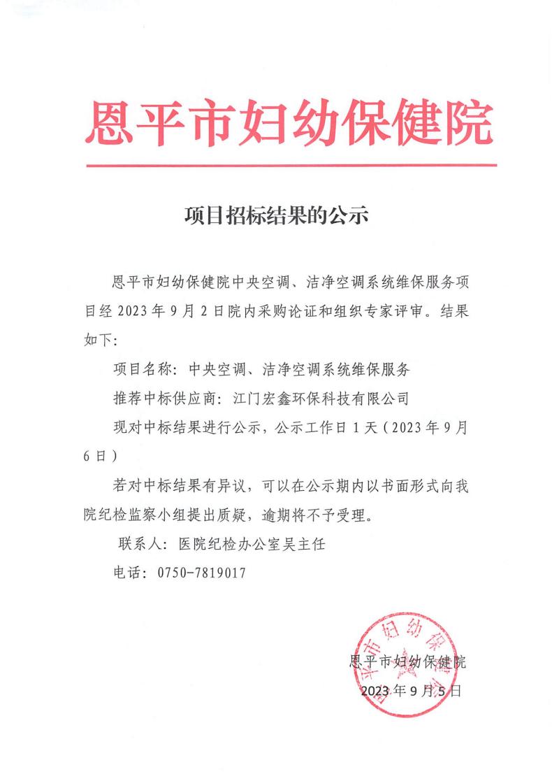 恩平市妇幼保健院信息系统维保服务项目招标......