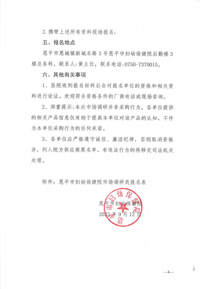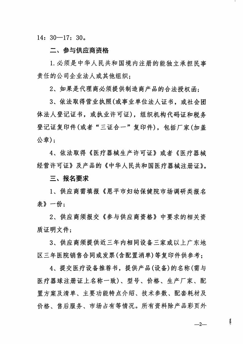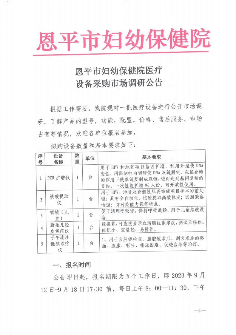 (市场调研公告)恩平市妇幼保健院医疗设备采购市场调研公告