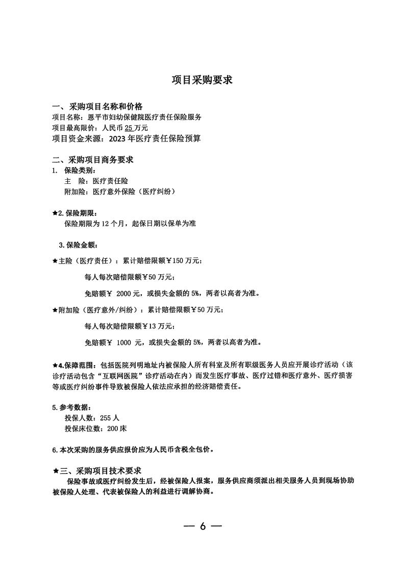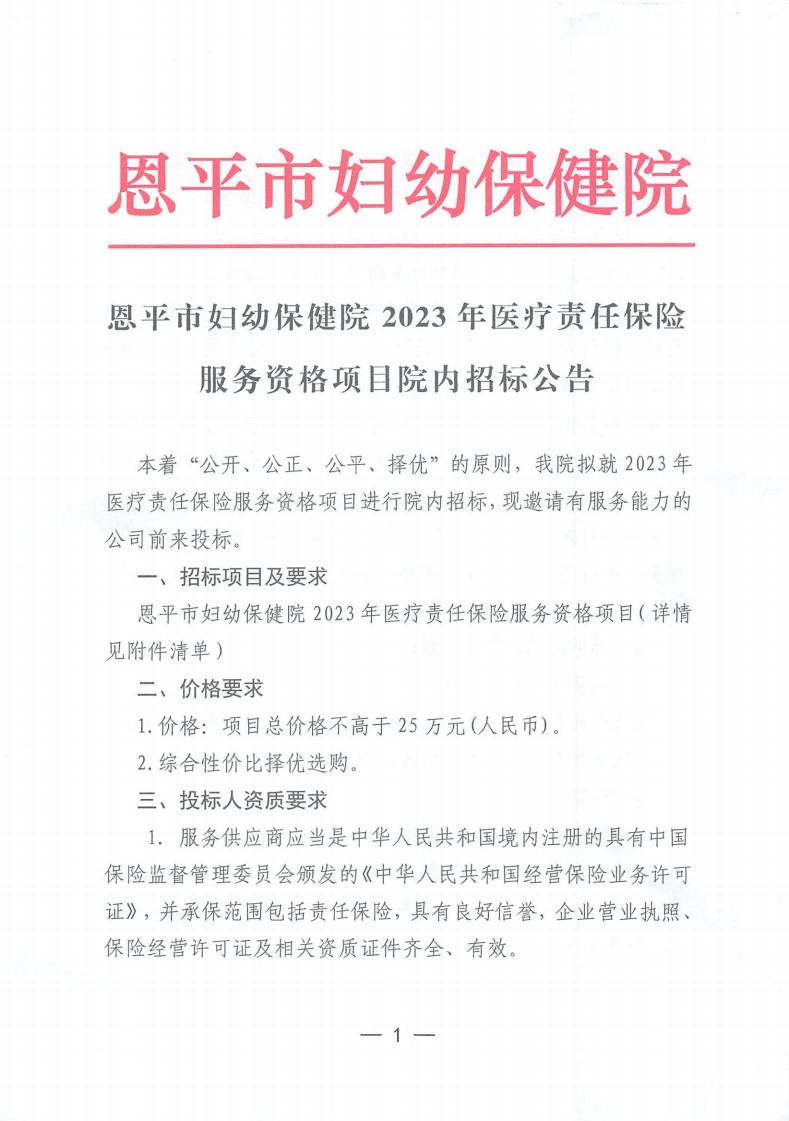 恩平市妇幼保健院2023年医疗责任保险服务资格项目院内招标公告