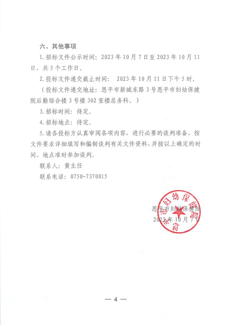 恩平市妇幼保健院关于医院后勤保障物资--......