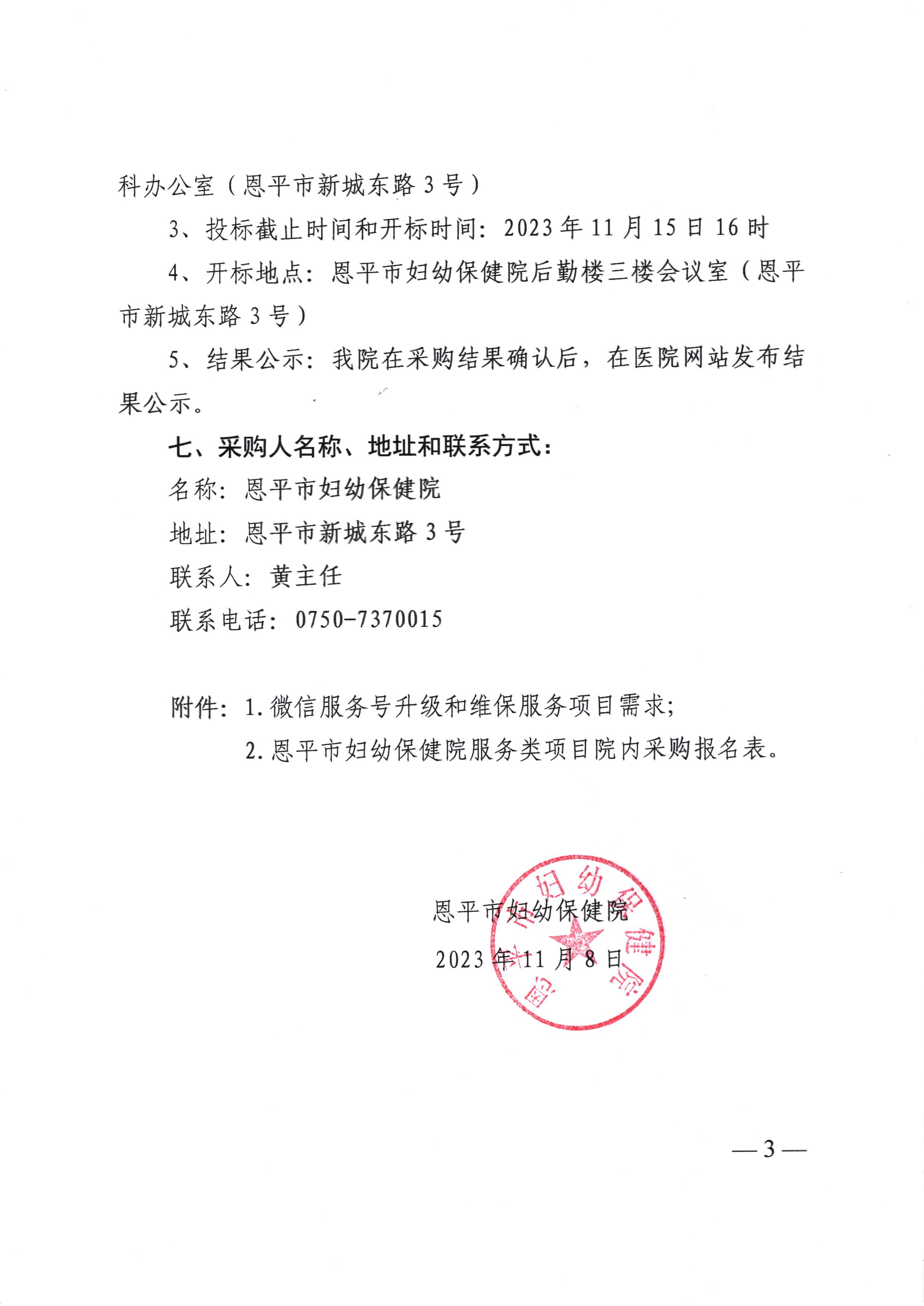 恩平市妇幼保健院微信服务号升级和维保服务项目招标公告