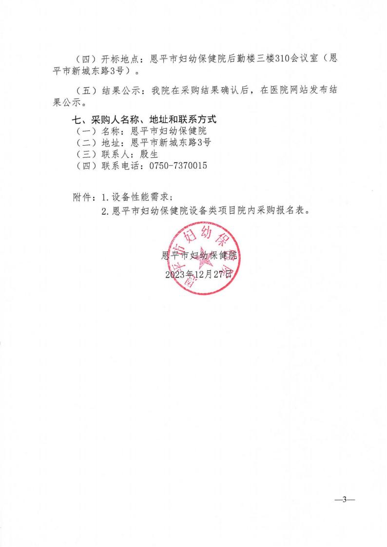 20231227 恒温杂交仪设备采购项目院内公开招标公告