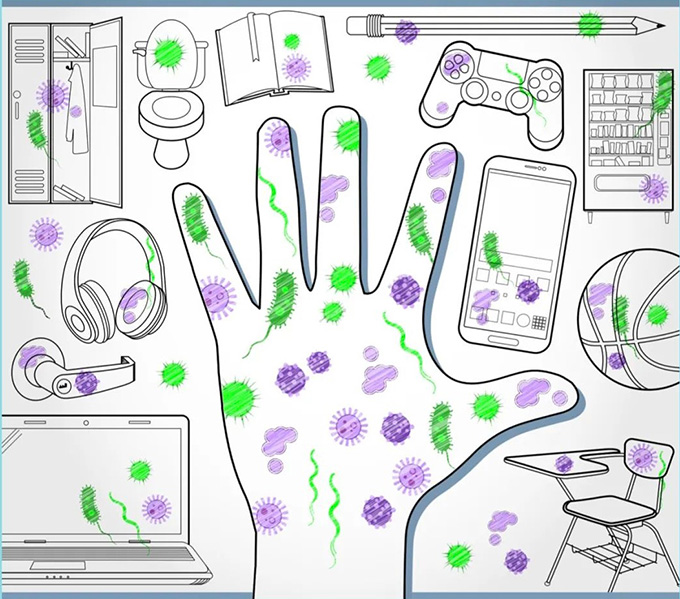 手是人体的“外交官”,人们一切的“外事活动”都需要它“首当其冲”,比如开门、吃饭、按电梯、玩手机、拆快递、电脑办公等,都要用手来完成。据相关资料统计,日常生活中,每个人的一只手上可附着的细菌达40多万个,当身体抵抗力下降的时候,手上的这些细菌、病毒就开始“跃跃欲试”,打算“为非作歹”了,从而容易诱发各种疾病。