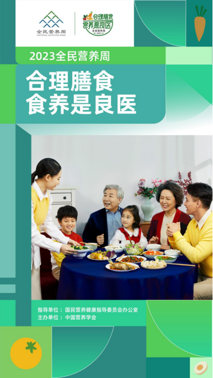 2023年5月14日-20日为第九届全民营养周,本次活动主题是合理膳食,食养是良医,鼓励居民合理搭配日常膳食,养成良好饮食习惯。