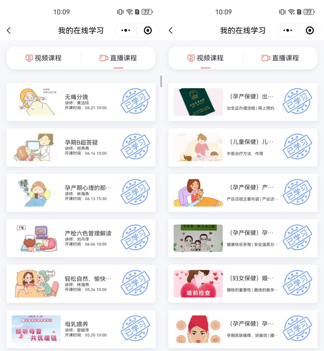 我院线上孕校云小程序共有五十多个小视频,内容涵盖整个围生期,也可以看看一些有关怀孕与分娩方面的书,做有备孕育的准妈妈。