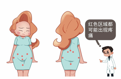 (2)可伴有腰背痛、臀部痛、腹股沟疼痛、大腿内侧疼痛。