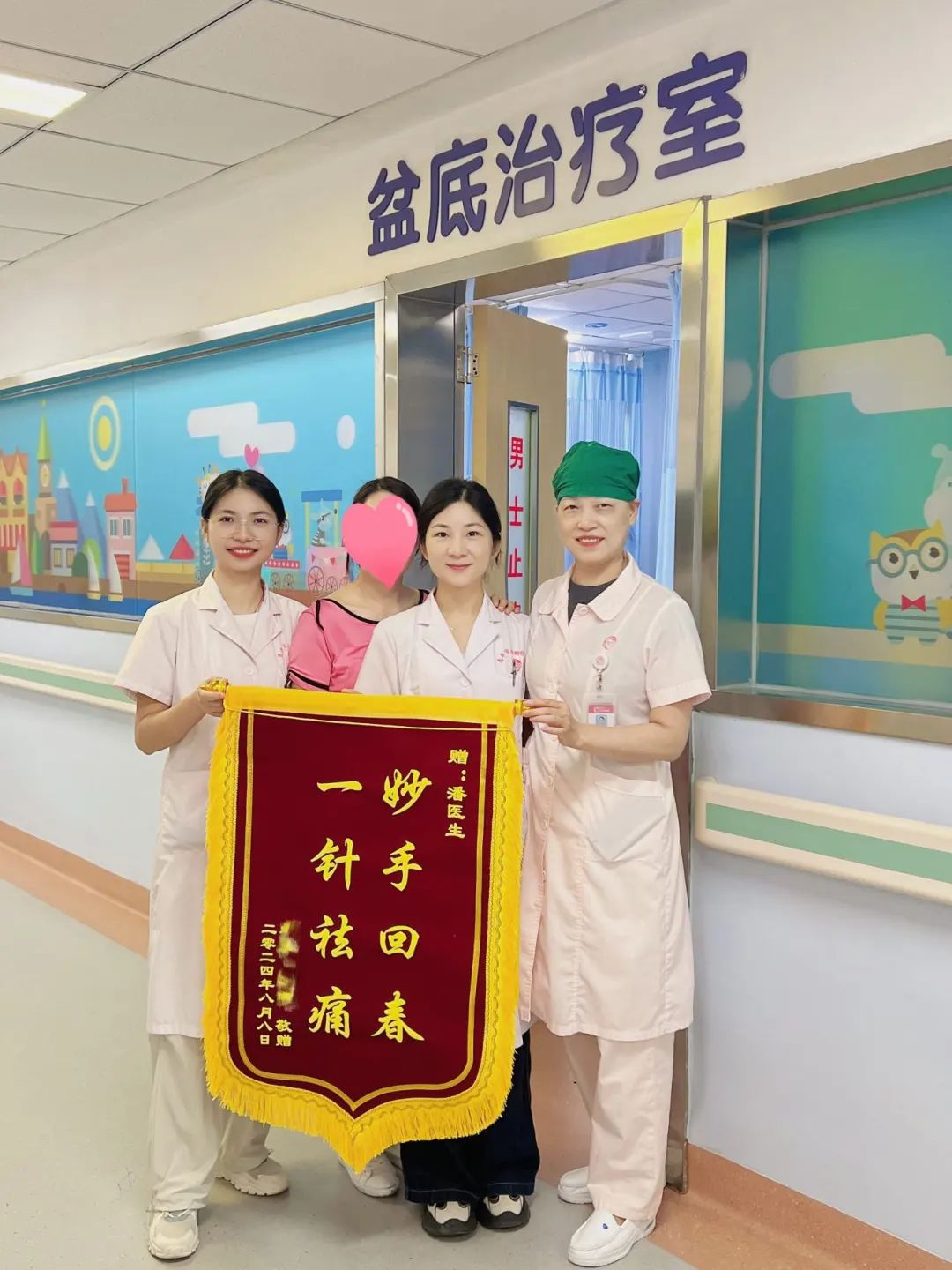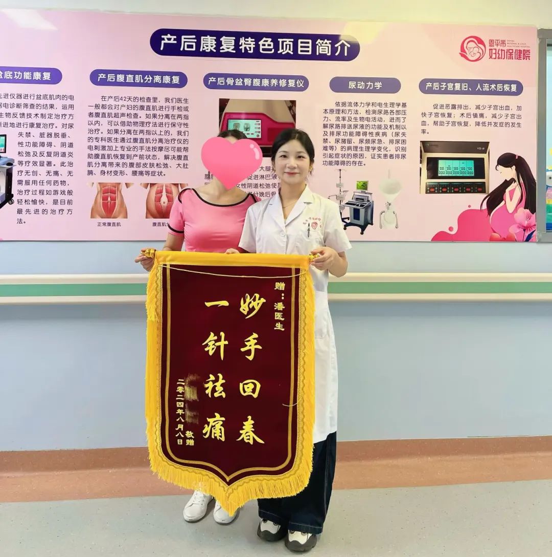 第二次治疗时带着饱受两年腰痛不适的妹妹小花一同就诊,经潘医生精湛的颊针技术及推拿治疗后症状得以缓解。在这期间姐姐不慎腰扭伤也通过颊针治疗取得良好效果,两姐妹(妹妹外出)特送来锦旗表达感谢!(均为化名)