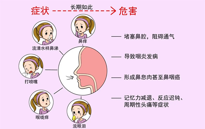 过敏性鼻炎如果扛着不治就会引发诸多并发症,比如哮喘、咽喉炎症、鼻窦炎等。儿童正处于生长发育阶段,如果患上鼻炎,不仅影响身体发育,还会影响睡眠、专注力下降、食欲减退等问题。