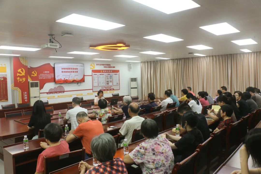 7月6日下午,院党总支书记、院长吴健嫦同志为党员干部讲授以“加快构建新发展格局 推动医院高质量发展”为主题的专题党课。党课围绕“推动医院高质量发展,必须坚持党的全面领导、必须坚持以人民健康为中心”的中心思想,从四个方面总结了医院近两年的发展情况,规划了未来发展思路。吴健嫦同志强调,要以党建为引领,以党的二十大精神为指引,深化服务内涵,守正创新、与时俱进,做精做细特色专科品牌,以饱满的工作热情、良好的精神状态、优异的工作业绩,谱写新时代医院高质量发展新篇章。