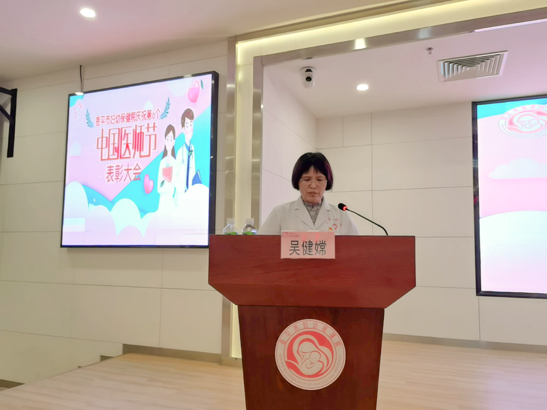 会上,院党总支书记、院长吴健嫦代表医院党政领导班子及全体职工,向全院日夜奋战在一线的医师致以节日的问候和崇高的敬意!吴健嫦表示,医院的综合实力不断提升,患者就医获得感、幸福感不断增加,离不开全院医务人员的共同付出。同时,她对全院医师提出希望:要始终坚定政治立场,牢记医者仁心,践行医者使命,廉洁从医,不断提升专业技能及服务能力,狠抓医疗质量安全,进一步规范医疗行为,切实为人民群众的身体健康和生命安全保驾护航,为医院的高质量发展做出更大的贡献。