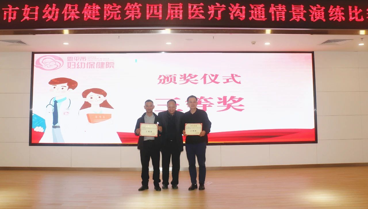 院党总支委员、副院长梁景云为获得三等奖的儿童保健部(左一)、妇女保健部(右一)颁奖
