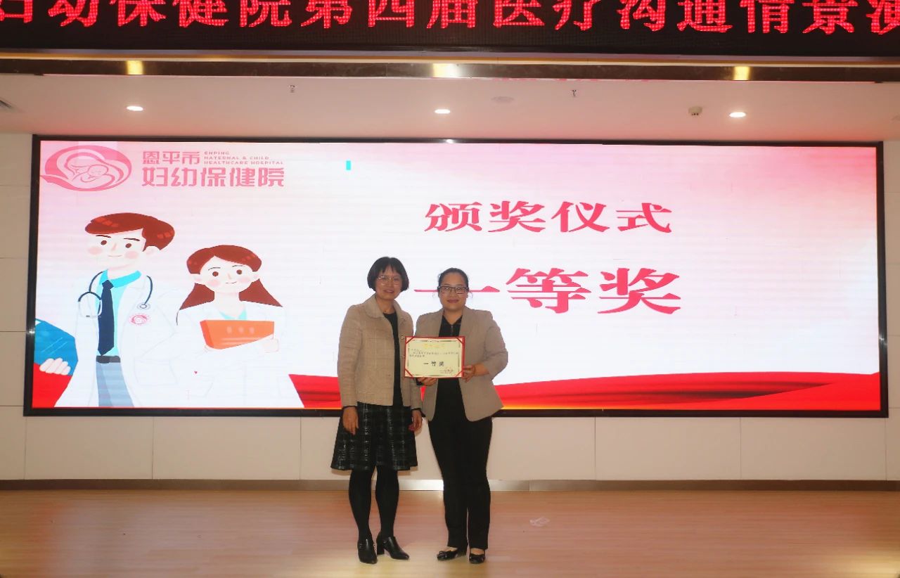 院党总支副书记吴坚艺为获得二等奖的孕产保健部颁奖