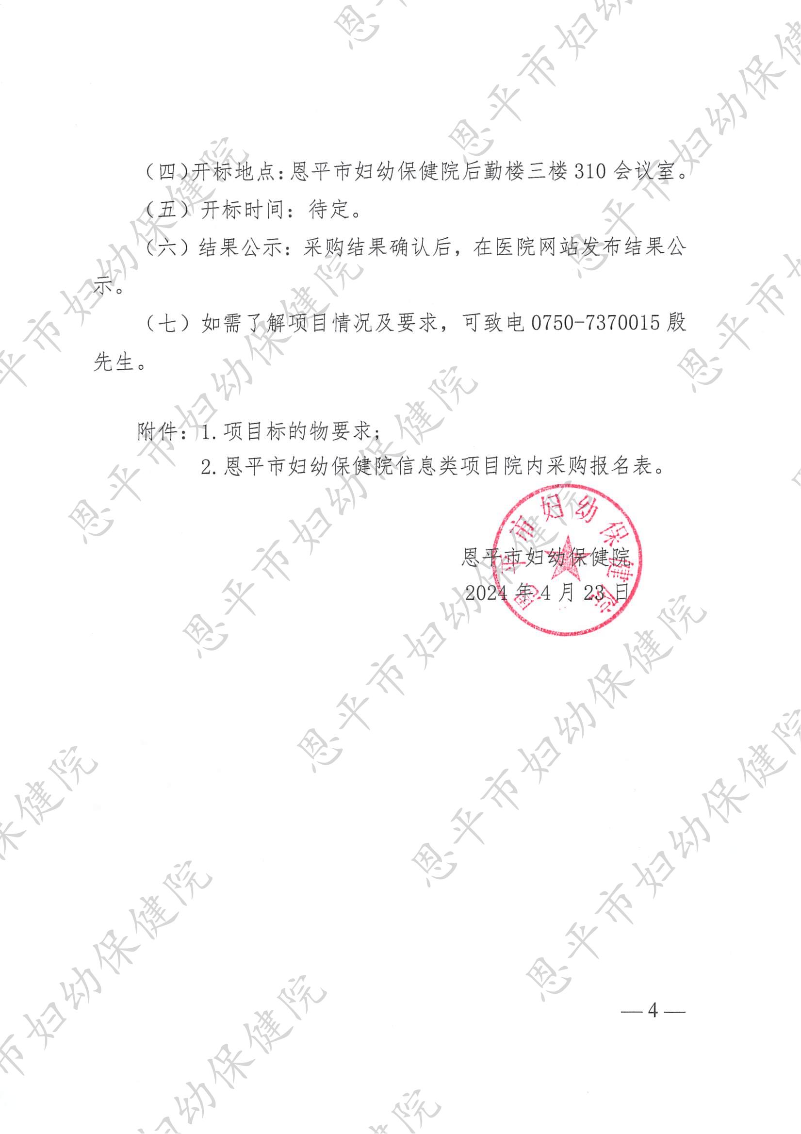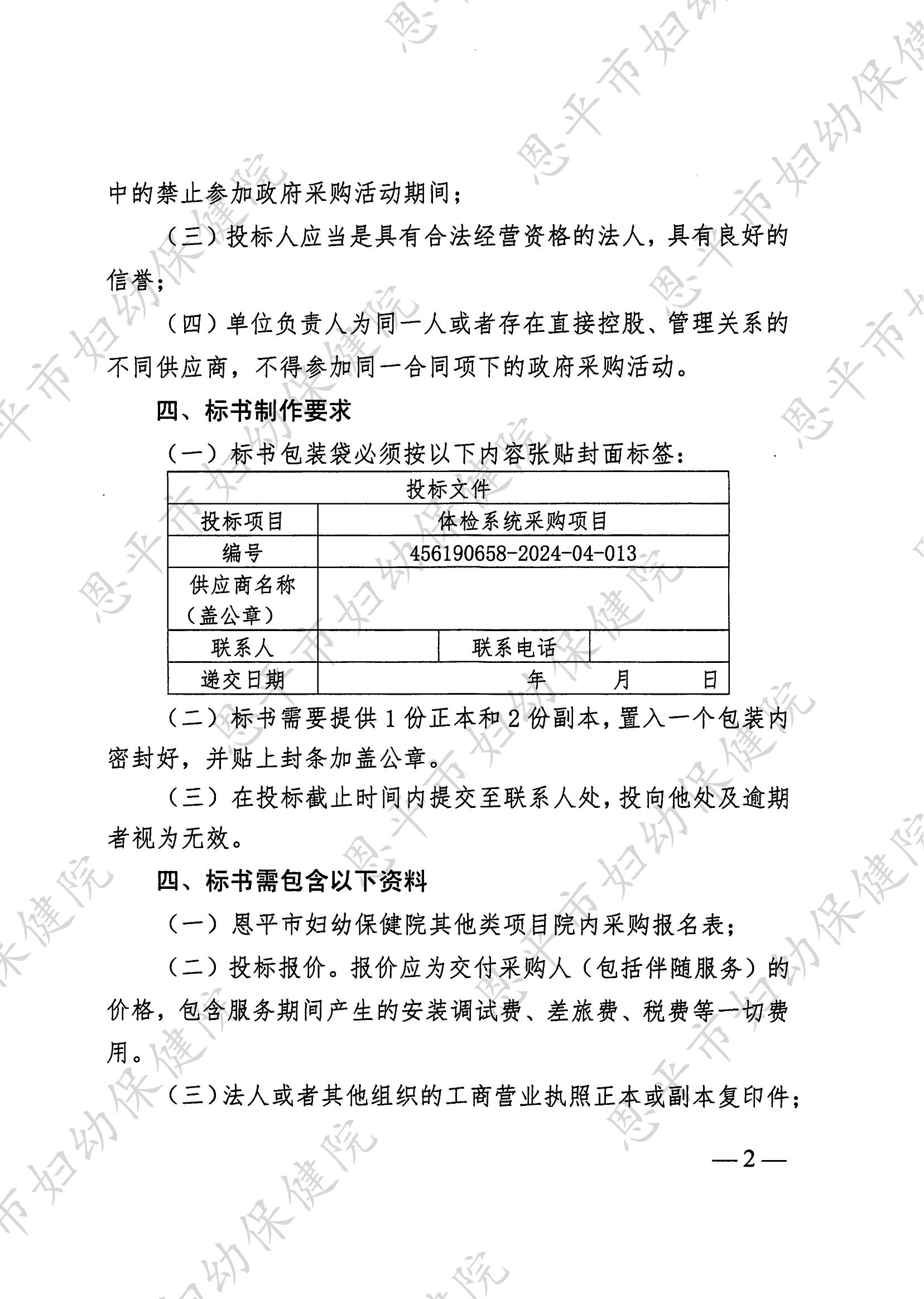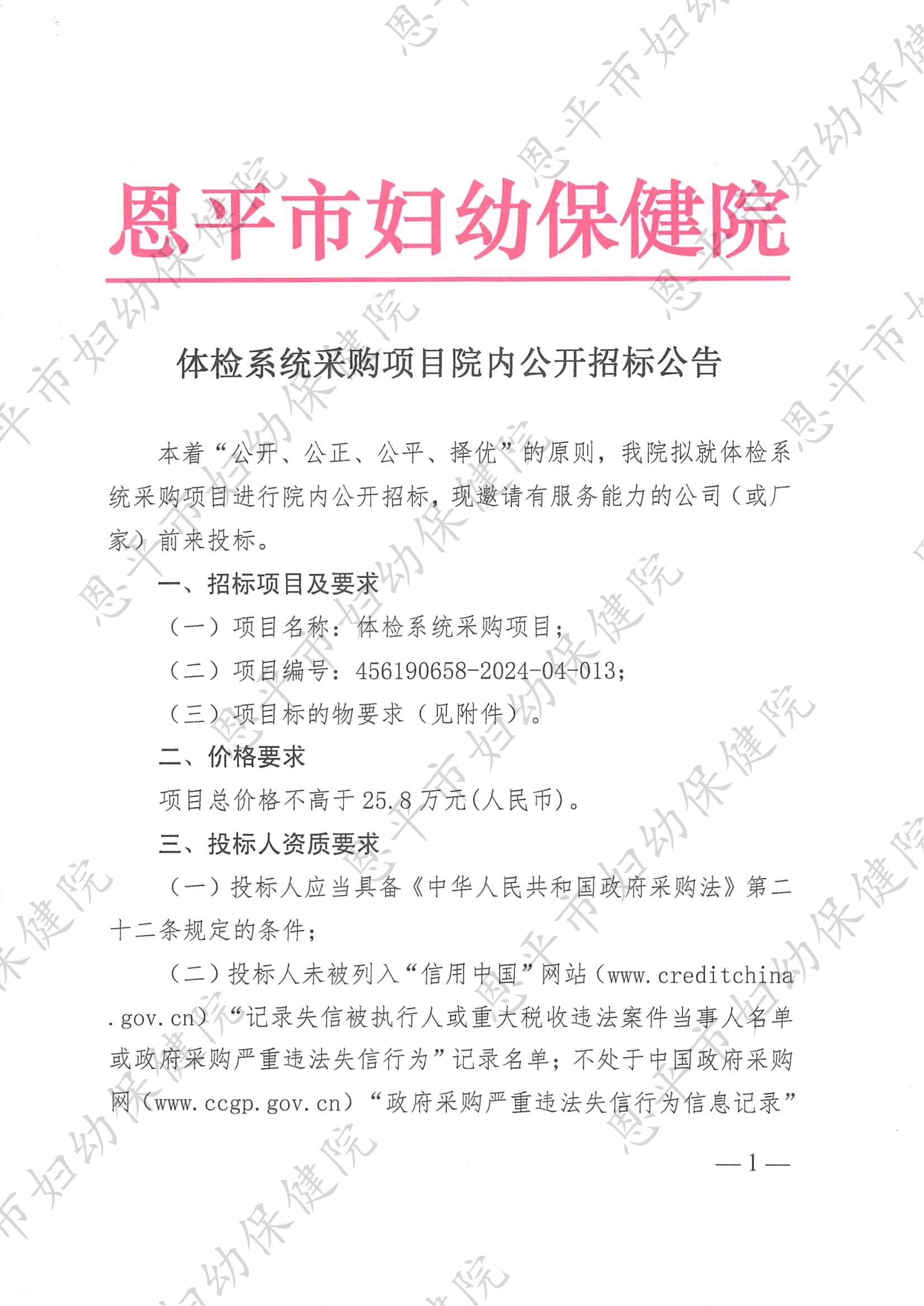 体检系统采购项目院内公开招标公告(编号:456190658-2024-04-013)