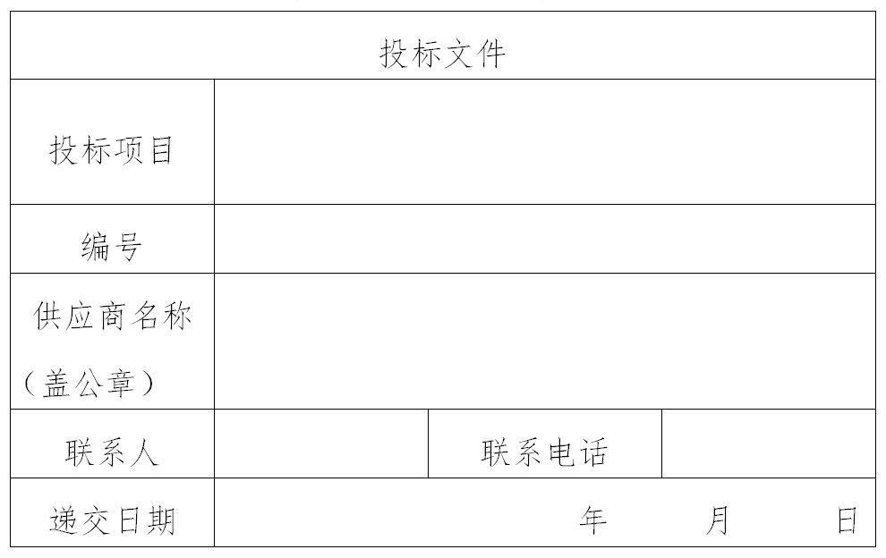 (一)标书包装袋必须按以下内容张贴封面标签: