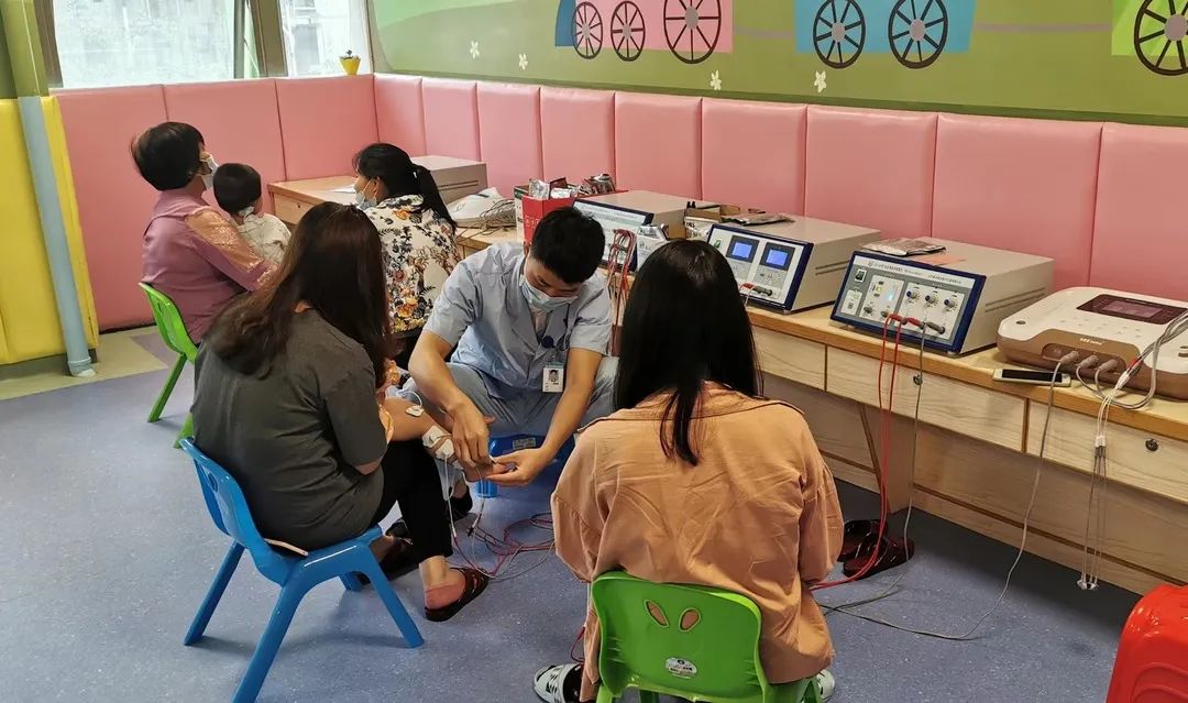 (图中小朋友正在我院儿童康复中心进行理疗和斜颈推拿)