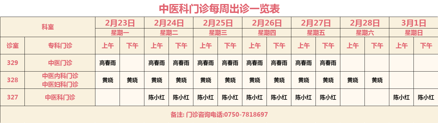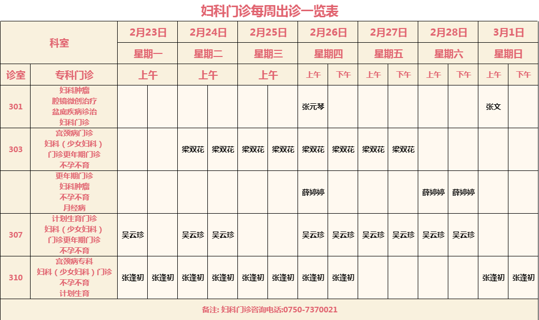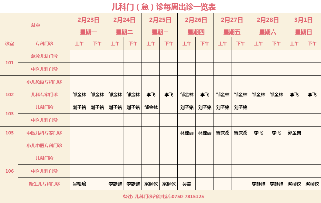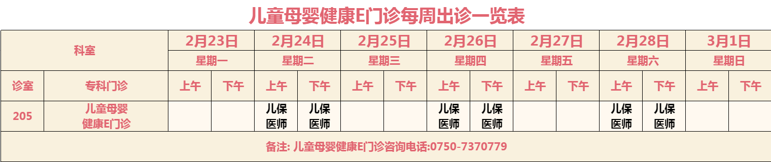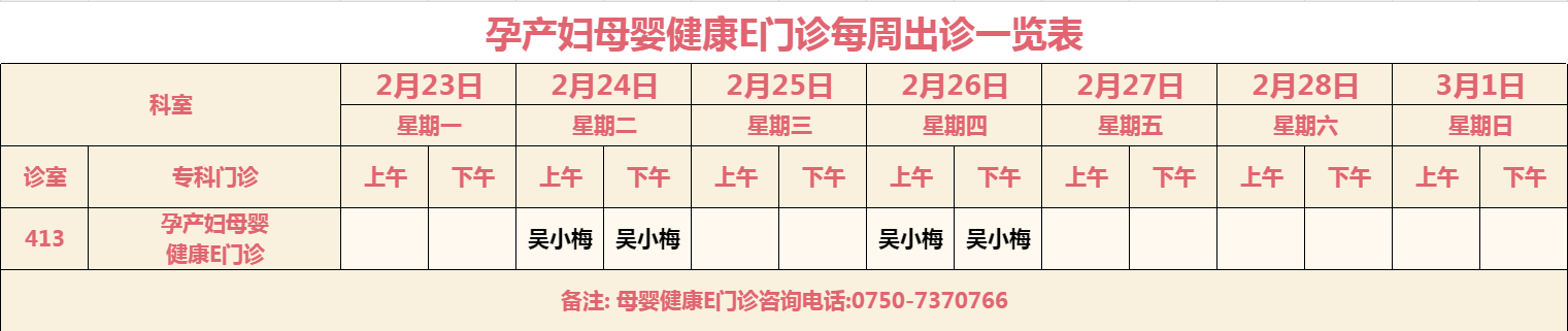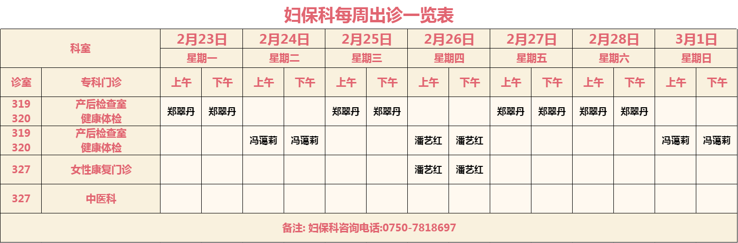 恩平市妇幼保健院门诊医生每周出诊一览表(2月23日-3月1日)