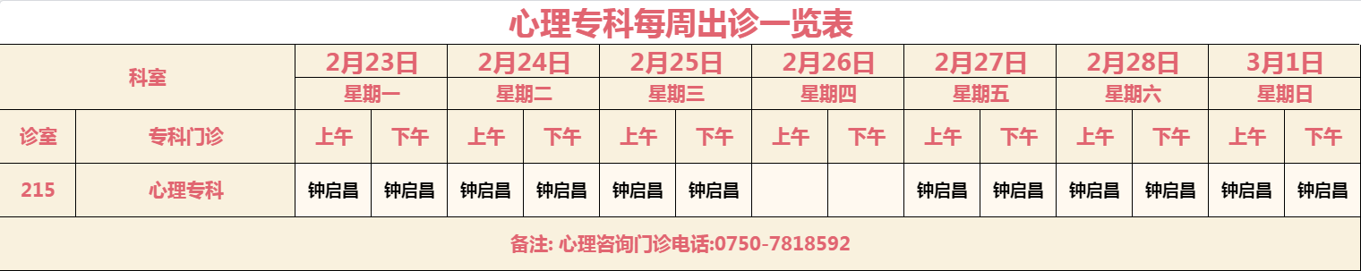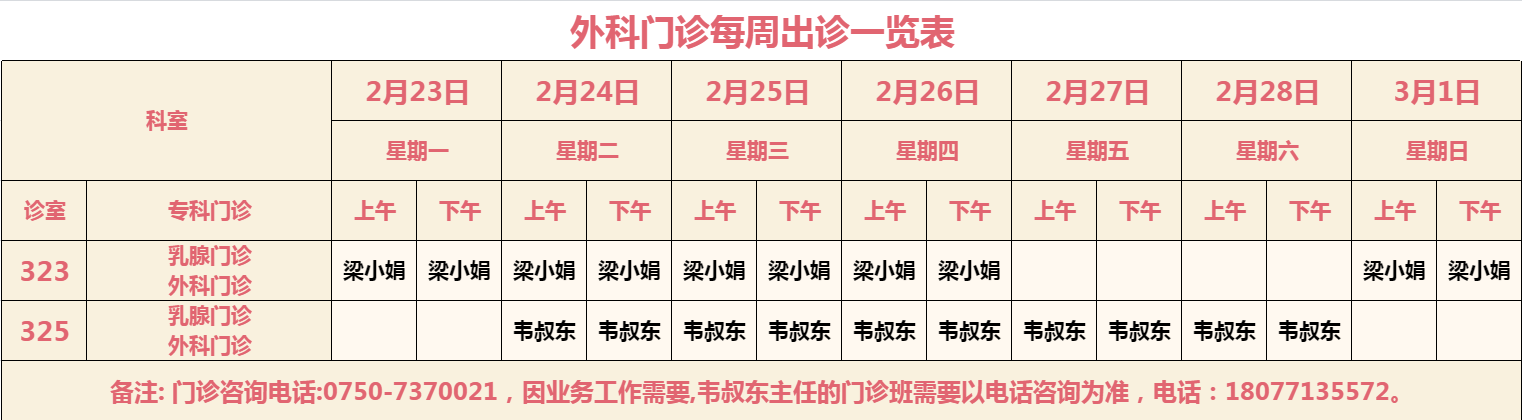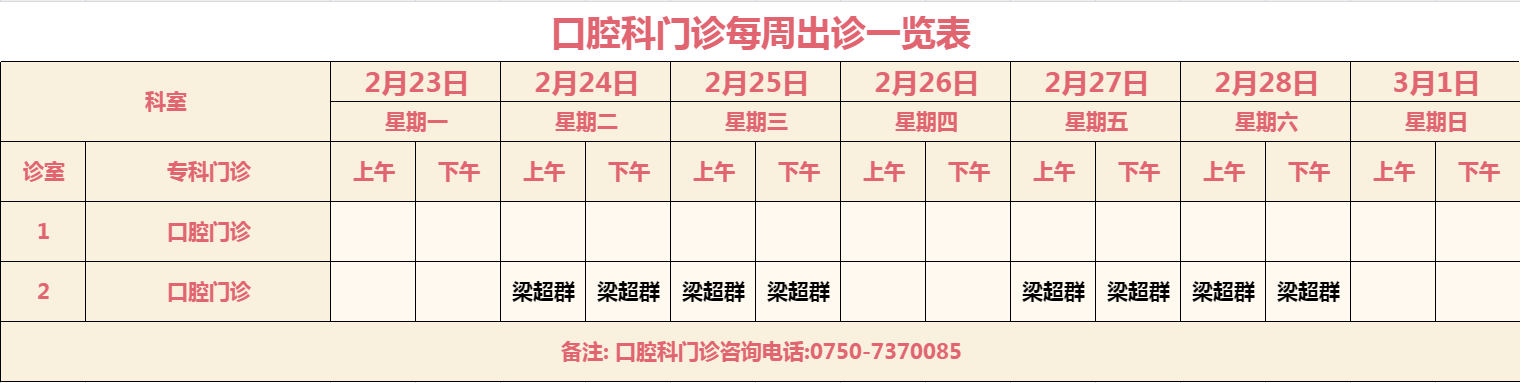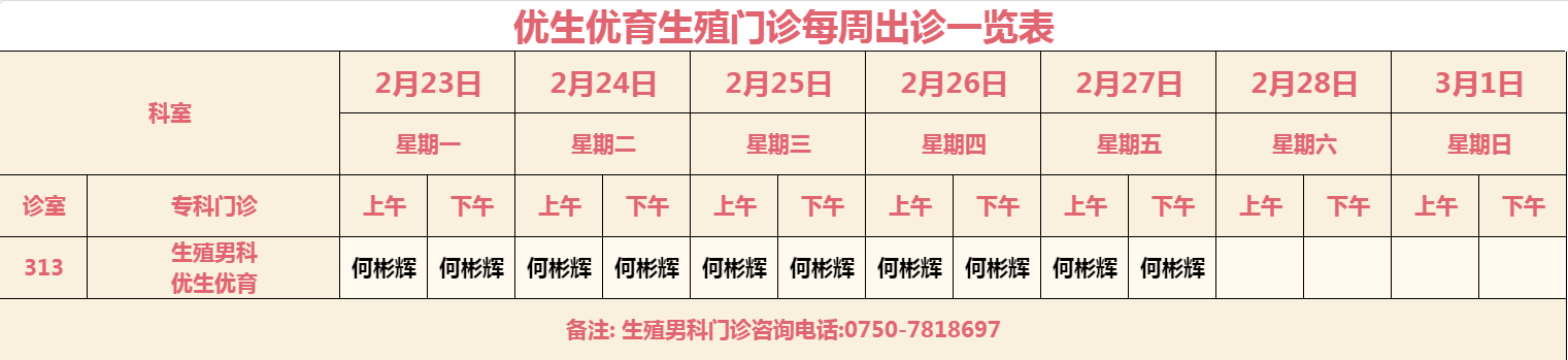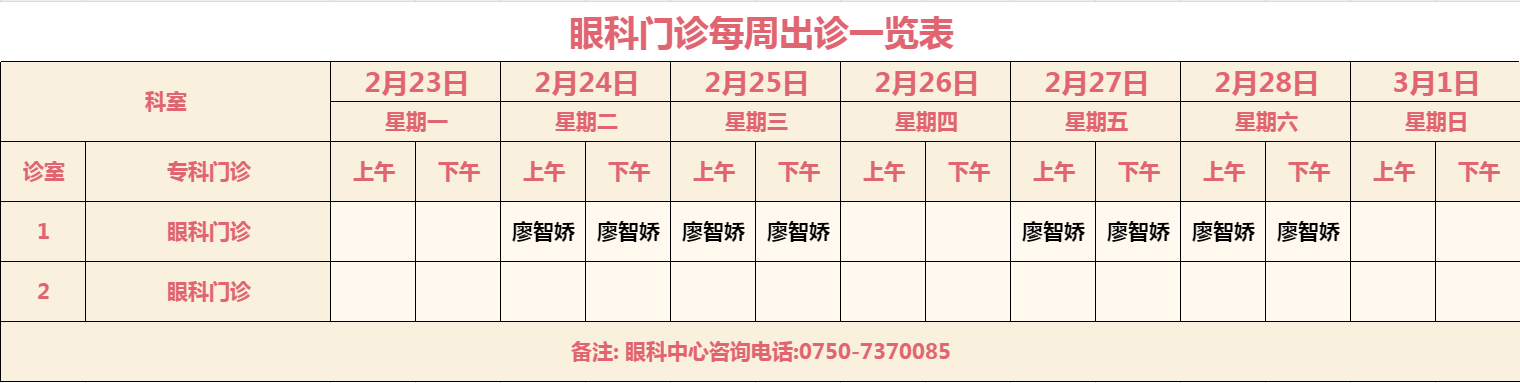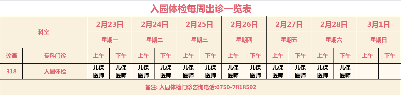 恩平市妇幼保健院门诊医生每周出诊一览表(2月23日-3月1日)