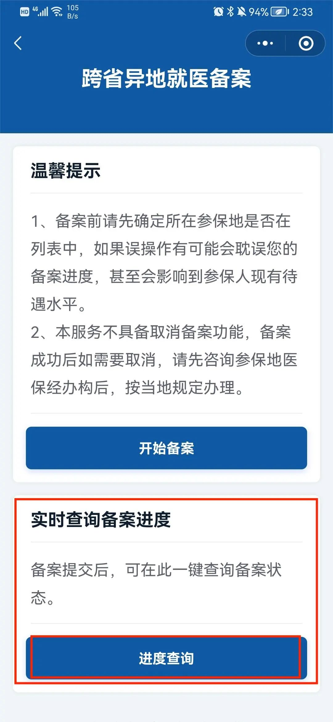 回到首页,点击【进度查询】可以一键查询备案状态。