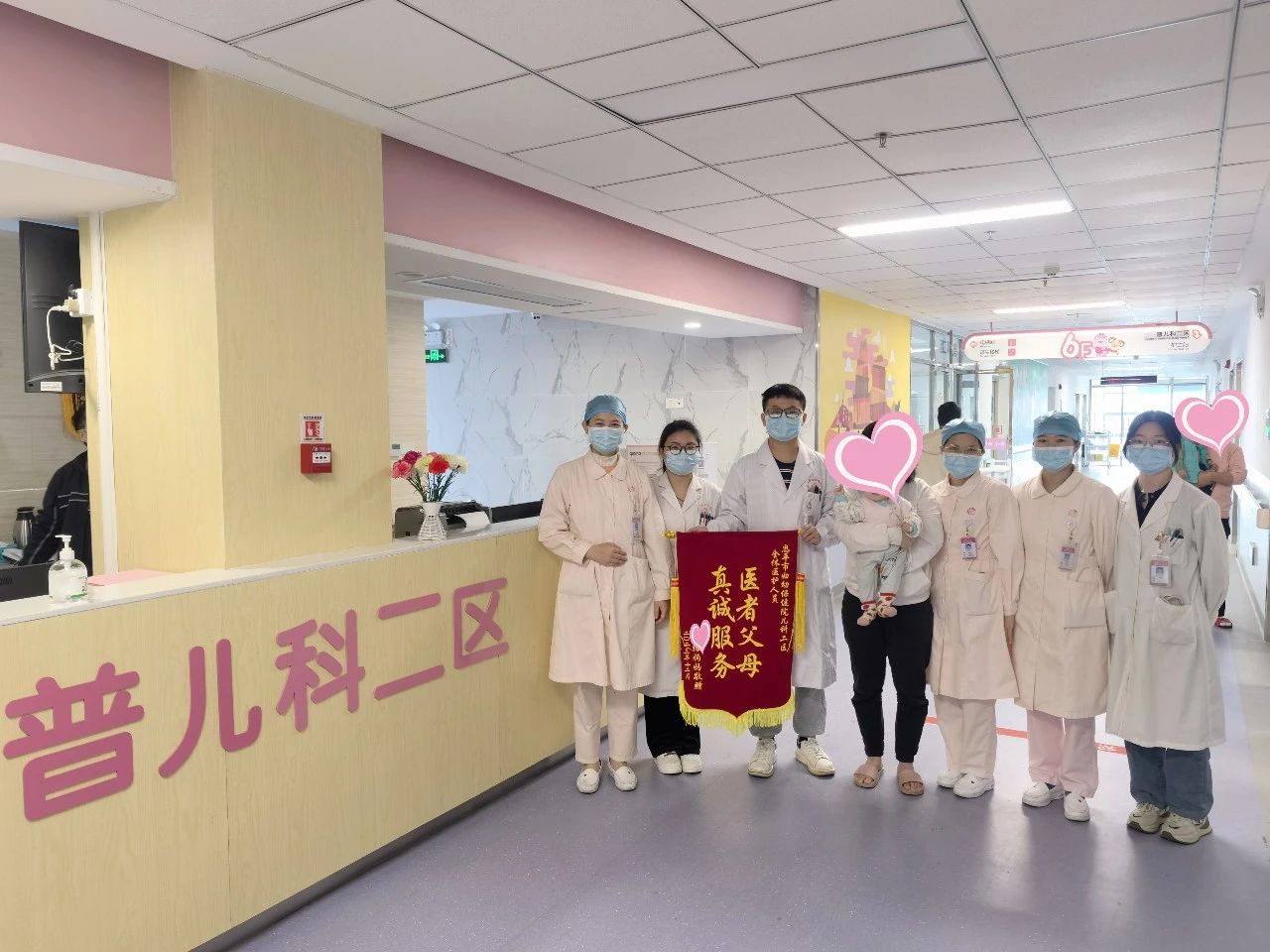 12月29日上午,患儿家属将一面印有“医者父母 真情服务”的锦旗送到普儿科二区。据了解,患儿因呼吸道感染入院,在住院期间,普儿科二区医护团队的精心治疗和无微不至的照顾让患儿家属十分感激,特送来锦旗以表感谢。