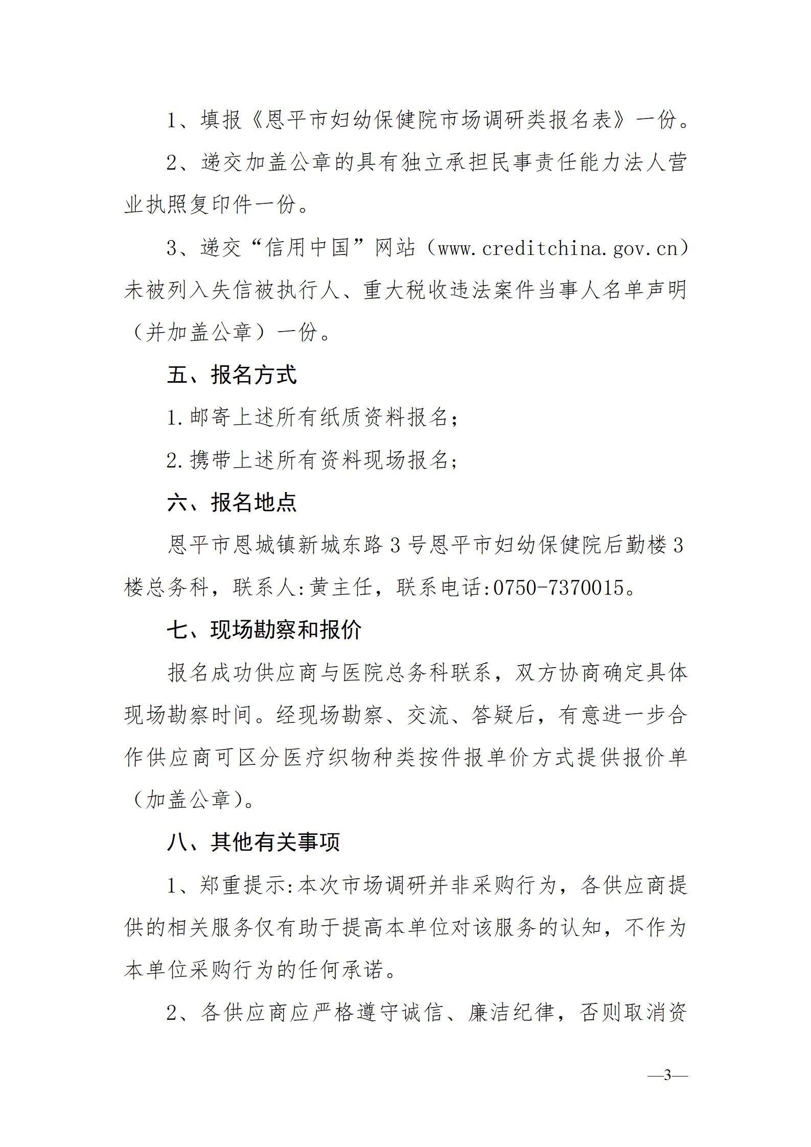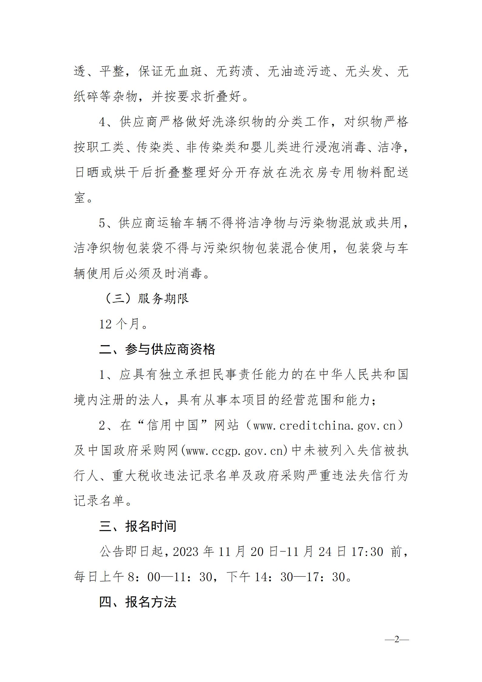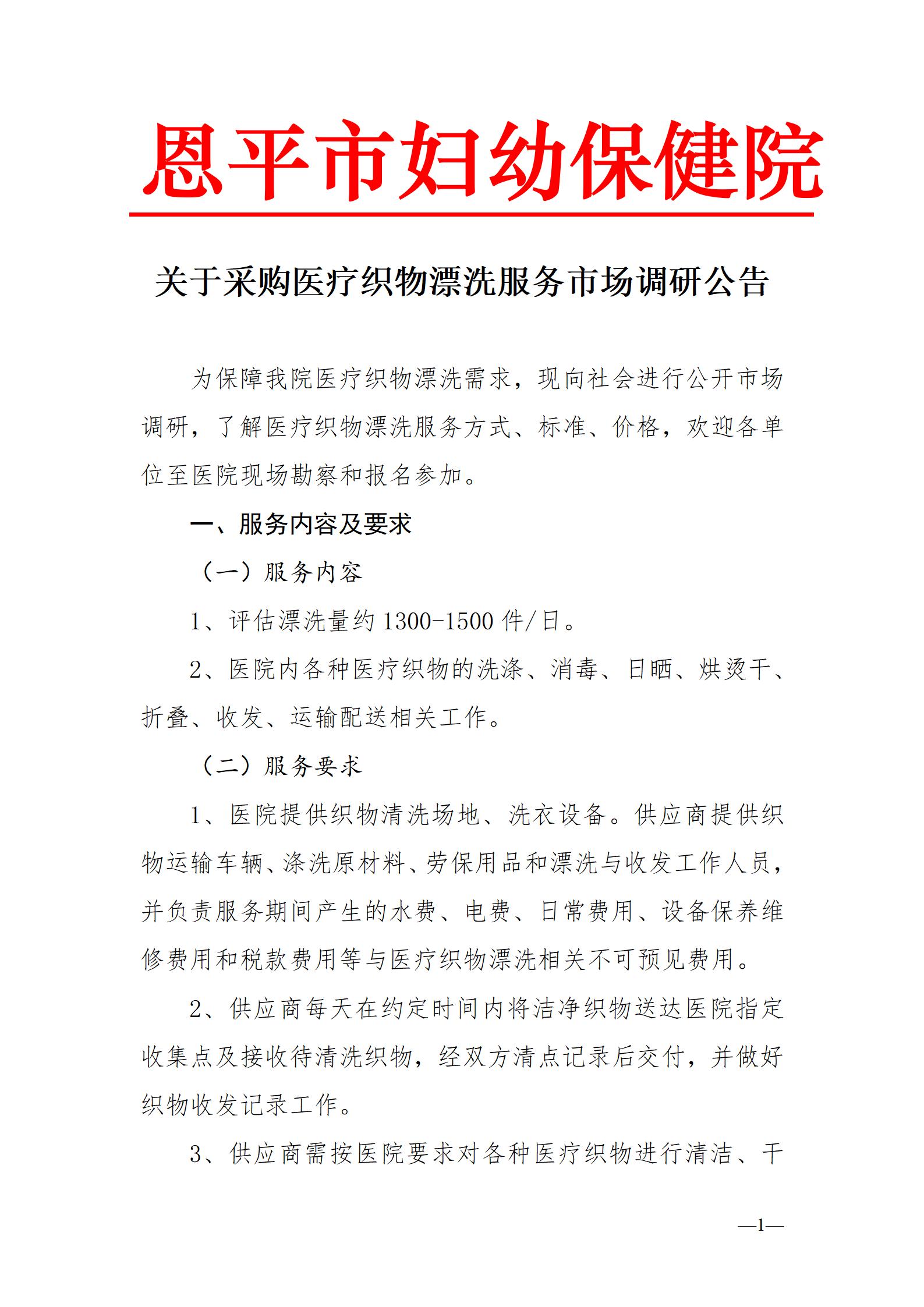 关于采购医疗织物漂洗服务市场调研公告