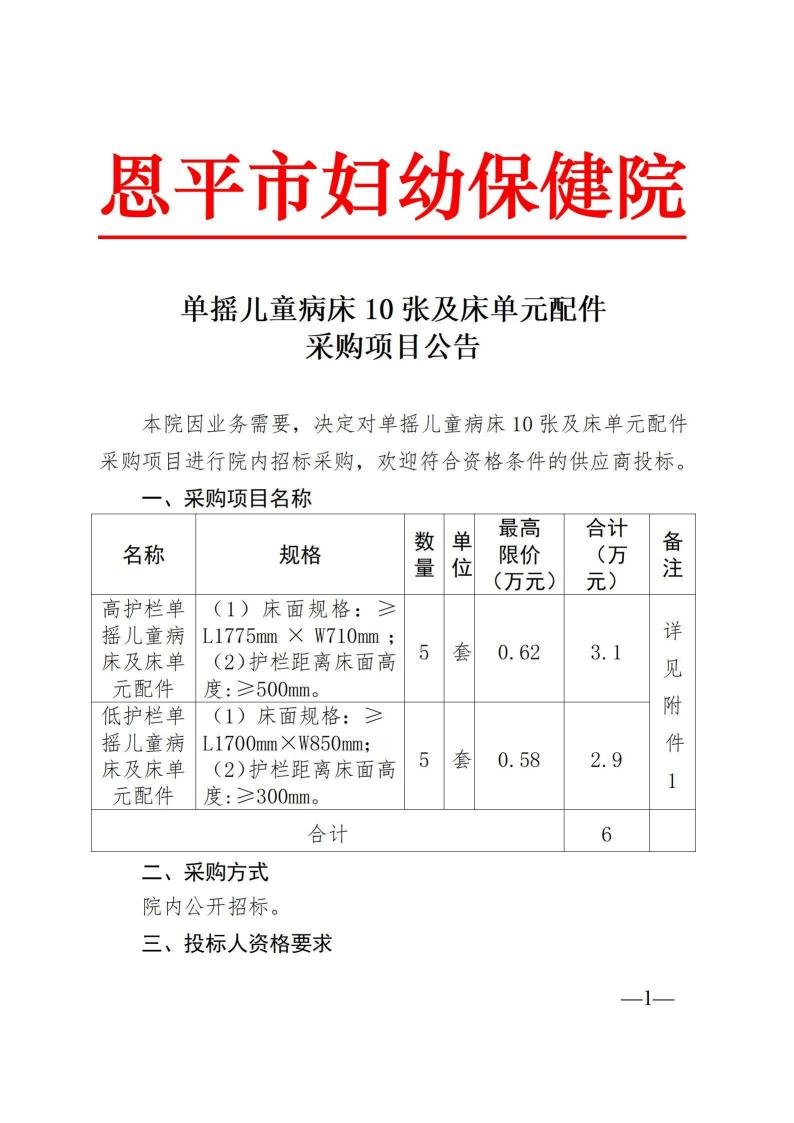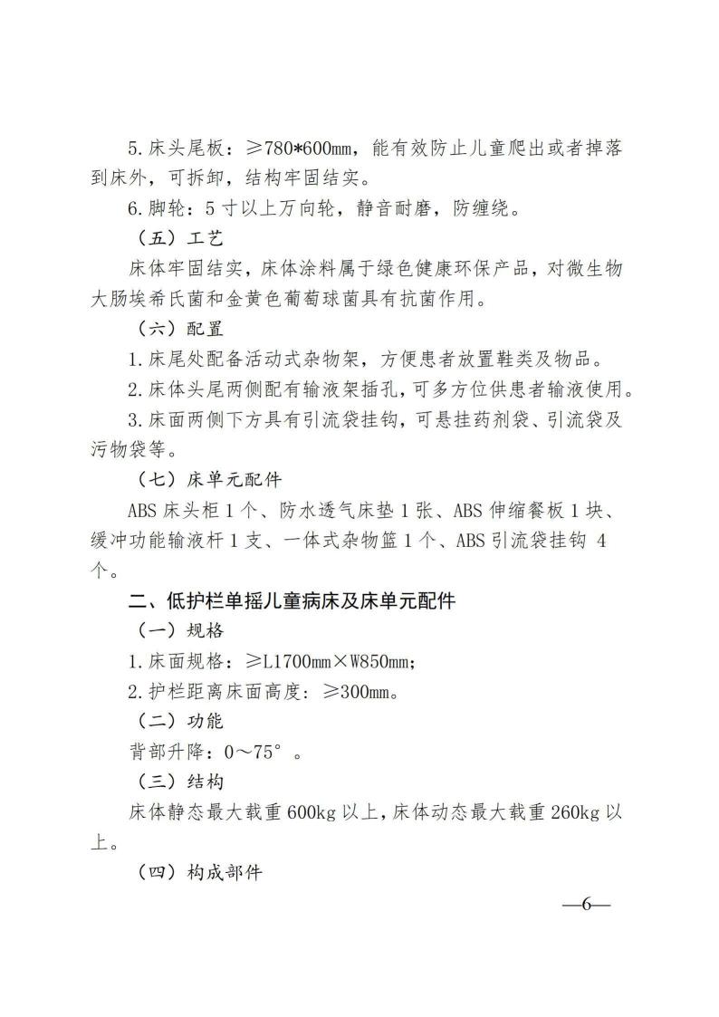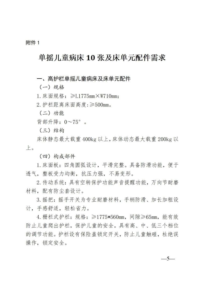单摇儿童病床10张及床单元配件采购项目公告