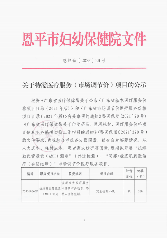关于特需医疗服务(市场调节价)项目的公示