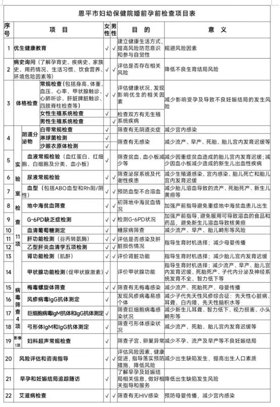 计划怀孕夫妇在怀孕前半年内或怀孕3个月内请前往恩平市妇幼保健院妇女保健科享受一次免费的孕前健康检查!