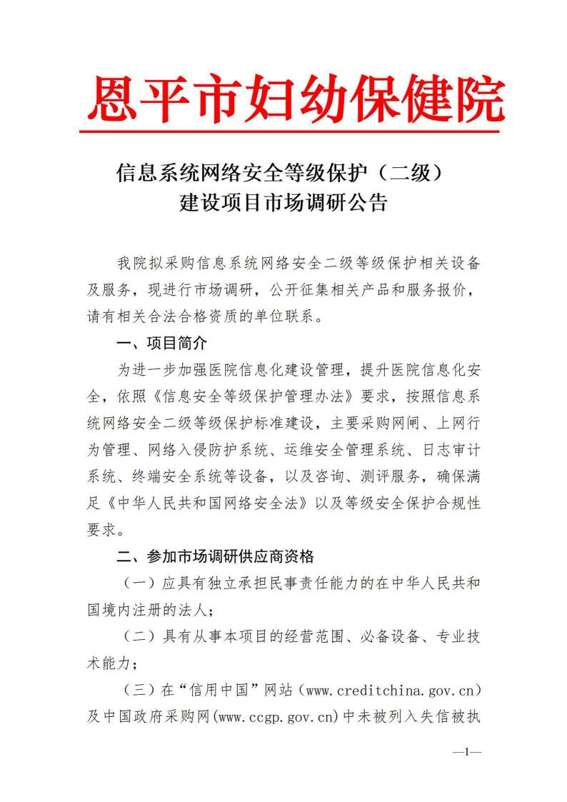 信息系统网络安全等级保护(二级)建设项目市场调研公告