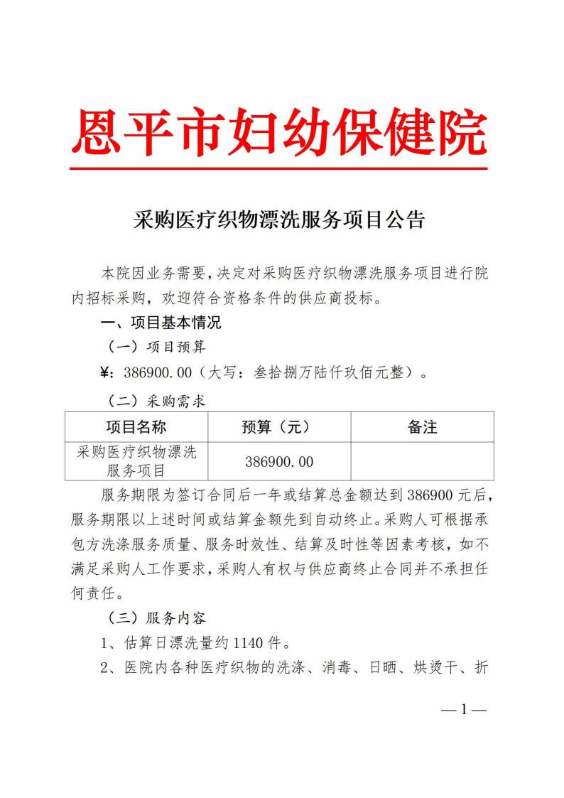采购医疗织物漂洗服务项目公告
