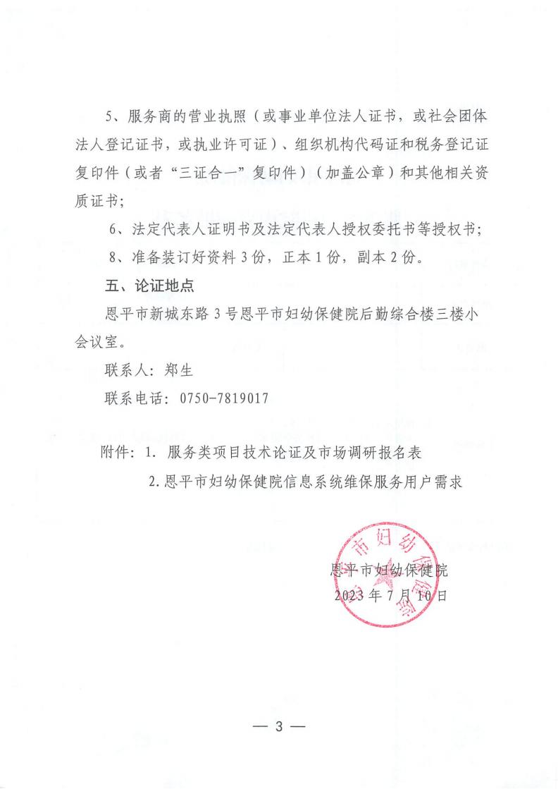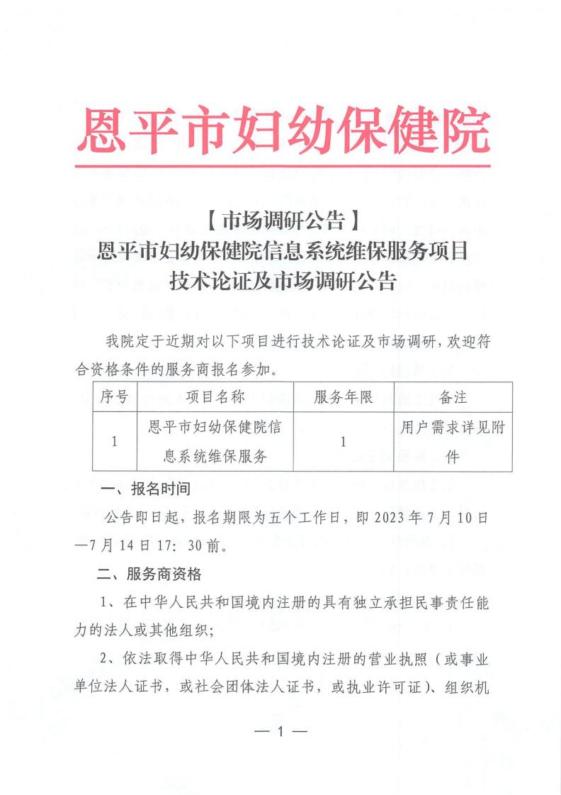 【市场调研公告】恩平市妇幼保健院信息系统维保服务项目技术论证及市场调研公告