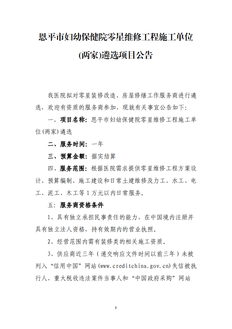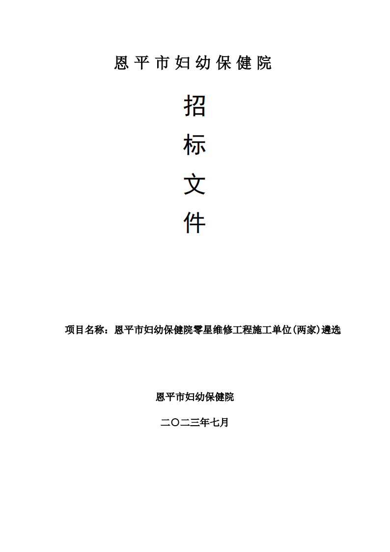 恩平市妇幼保健院零星维修工程施工单位(两家)遴选
