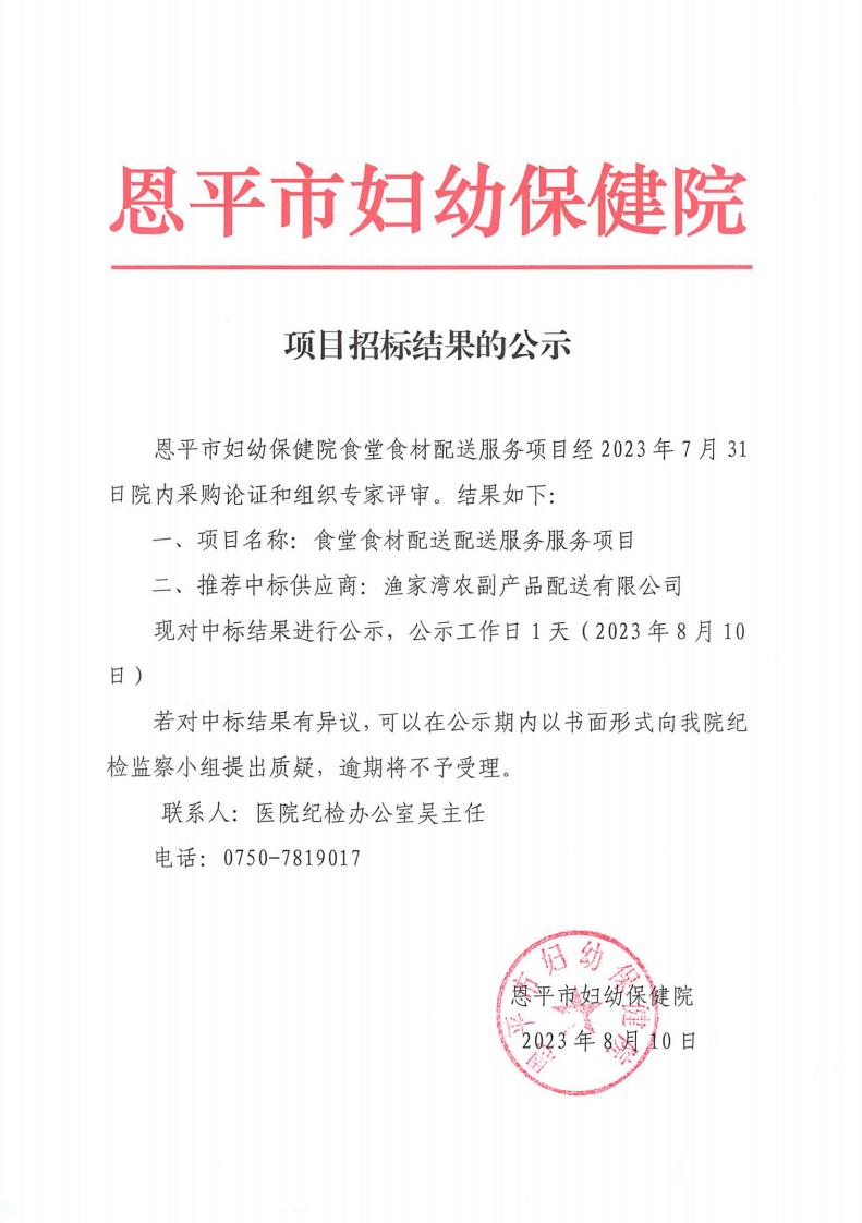 恩平市妇幼保健院人才招聘服务项目院内招标......