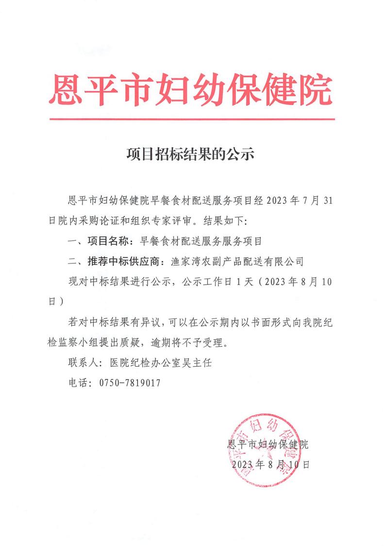 采购结果公示(早餐食材)