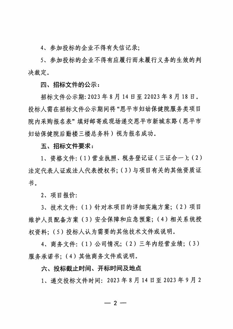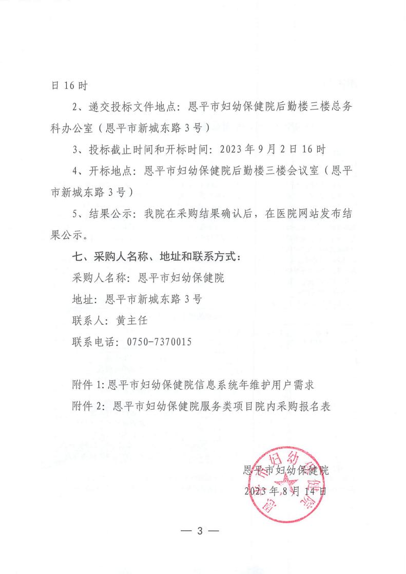 恩平市妇幼保健院信息系统维保服务项目院内......
