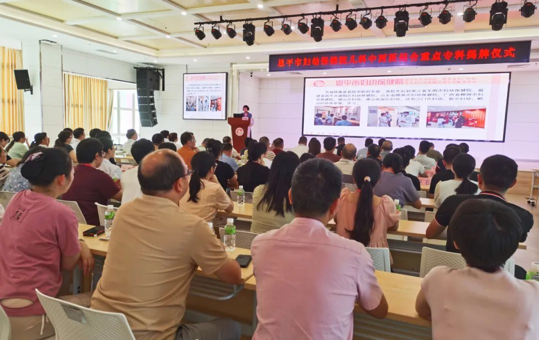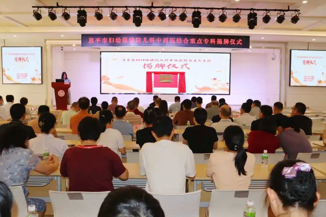 9月2日下午,恩平市妇幼保健院儿科中西医结合重点专科揭牌仪式在市妇幼保健院综合楼五楼大会议室举行。市卫生健康局党组书记蒋蔚昱同志,党组成员、副局长张坚强同志,医政股负责人朱运鹏,中医股股长方晔出席仪式,各医疗卫生单位主要领导和中医工作负责人、我院领导班子及相关负责人参加了本次仪式。仪式由市卫生健康局中医股股长方晔主持。